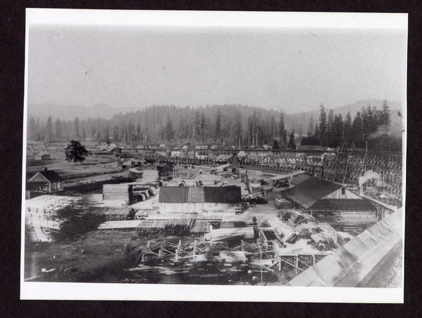 Photograph of lumber yard and log flume, Marcola, Oregon, 1907Entry/Object ID
