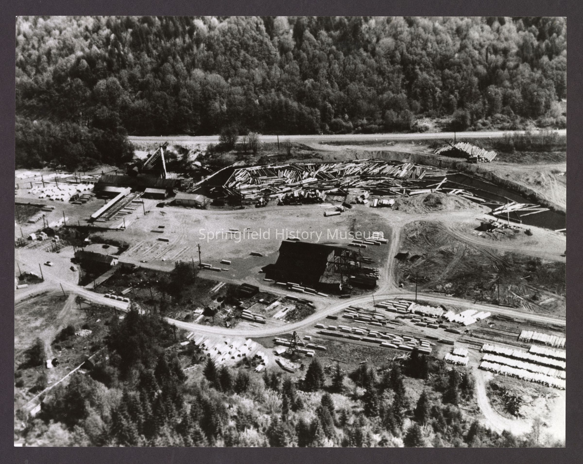 One 11 x 14 black and white photograph of aerial view of mill, Labeled as, "Lyda Mill, Glenwood, Oregon" . Donated as FIC item with no provenance by Polson Museum Board.Copyright