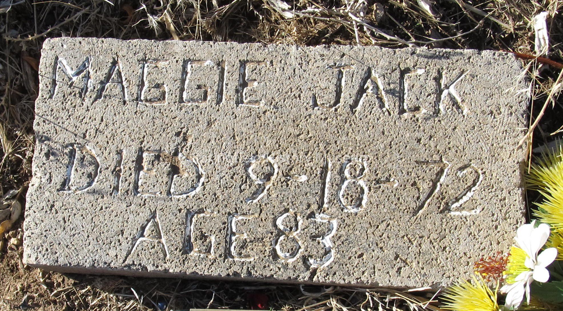 According to Find a Grave (image attached), "While her headstone says she was age 83 when she died, the U.S. Indian Census records show she was born in 1873. Maggie was married 3 known times: between 1913-1919 she married Big Foot Frank - no known children. Before 1923 she married William Phoenix - no known children. On Sept 13, 1927 in Harney County she married Willie Jack". In his death notice in 1954, Willie is listed as "last of the medicine men of the Paiute Indian Tribe at Burns".