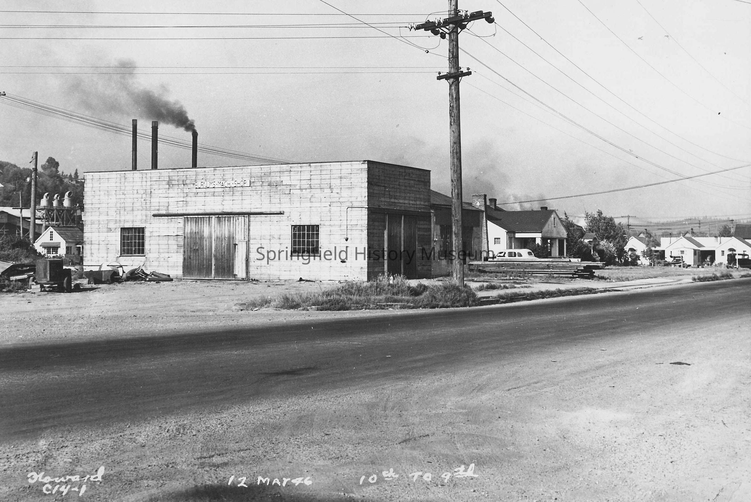 Business & Industry, Street Views, Burnum's Machine Shop, Main Street, 9th Street, 10th Street, Street Views, Sawmills, Smoke Stacks, Howard C14-1, Business & Industry--Burnum's Machine Shop, Springfield--Streets--Main Street, Springfield--Streets--9th Street, Springfield--Streets--10th Street, Street Views--Springfield