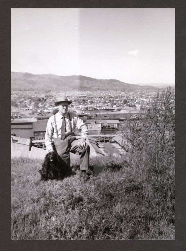 Photograph of Man with Dog on Willamette Heights near Booth-Kelly Mill, 1940sEntry/Object ID