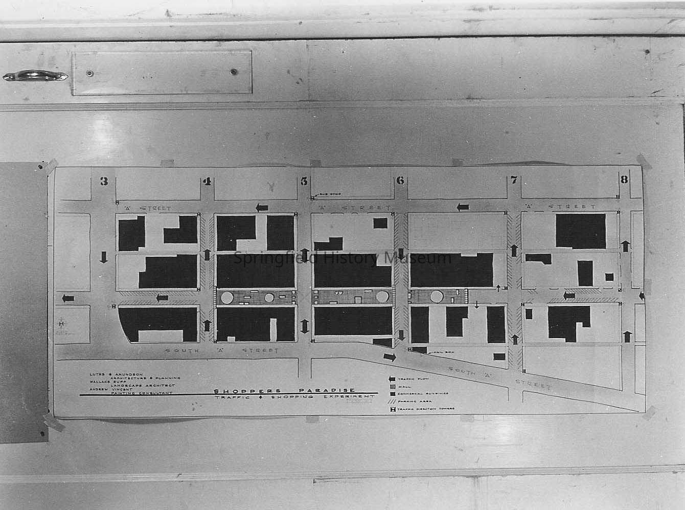 Business & Industry, Shoppers Paradise, Map, Traffic and Shopping Experiment, A Street, Main Street, 3rd Street, 4th Street, 5th Street, 6th Street, 7th Street, 8th Street, Business & Industry--Shoppers Paradise, Archival Scan--Map, Springfield--Streets--A Street, Springfield--Streets--Main Street, Springfield--Streets--3rd Street, Springfield--Streets--4th Street, Springfield--Streets--5th Street, Springfield--Streets--6th Street, Springfield--Streets--7th Street, Springfield--Streets--8th Street