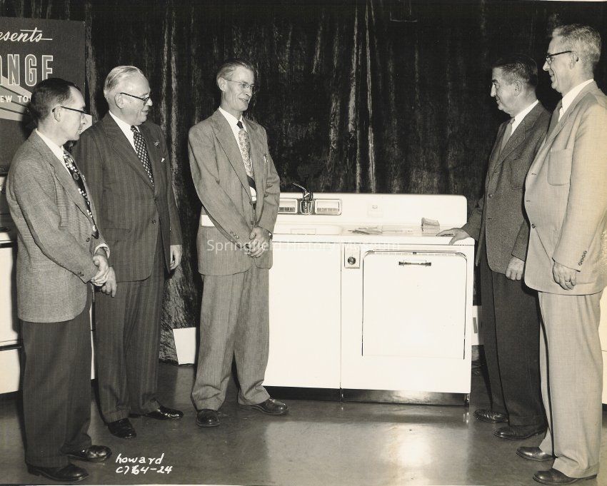 Photograph of men posed in front of appliances, Springfield Electric Appliance Show, Springfield, Oregon, 1954Entry/Object ID