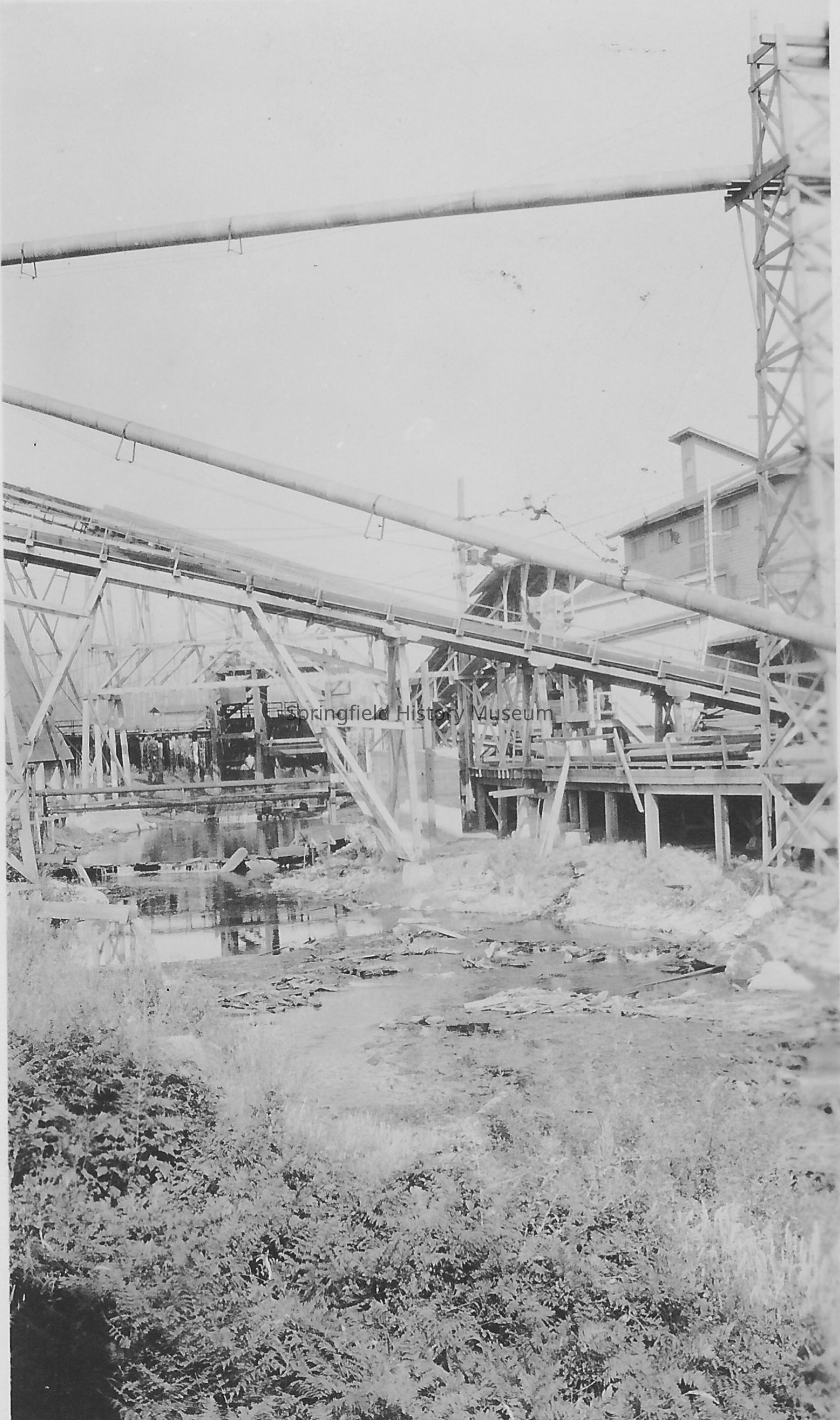 Photograph of mill creek between Booth Kelly Mill and the powerhouse burner, Wendling, Oregon, circa 1920sEntry/Object ID