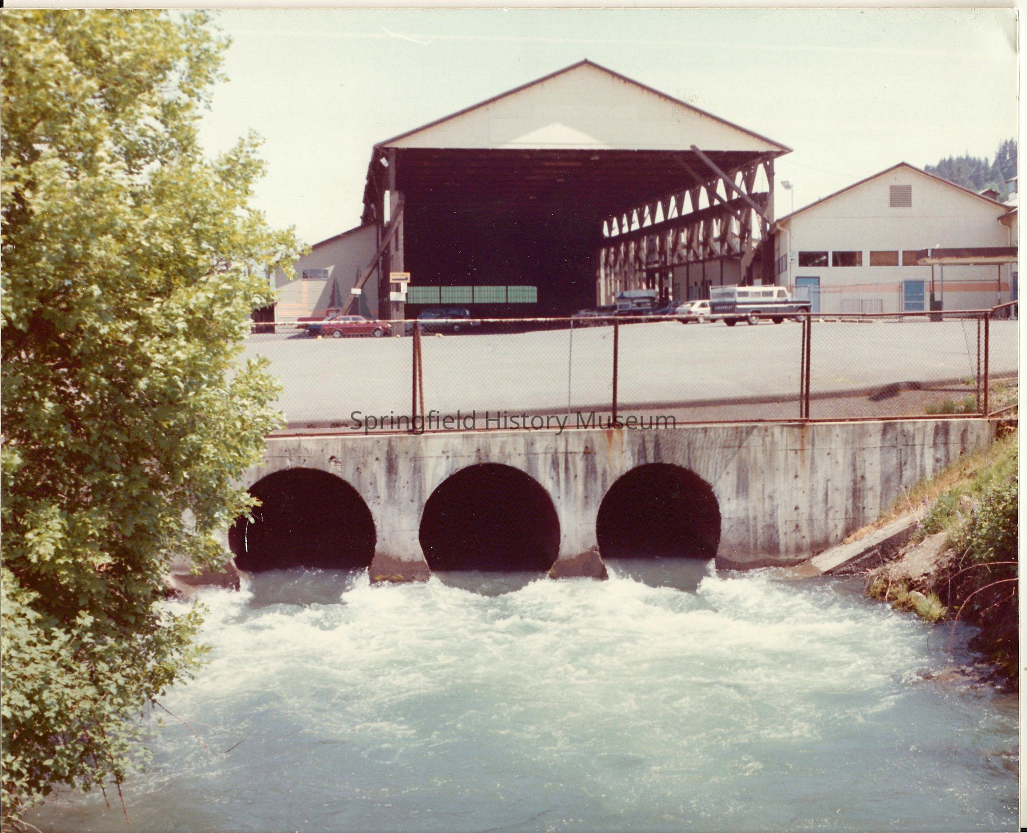 Photo of Springfield, Oregon, Millrace "piped" from under the Big M shopping center parking lot, 1982.