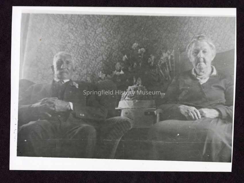 PHOTO of Mr. John Petross and Mrs. Petross in arm chairs at their 50th wedding anniversary, unknown location, undated