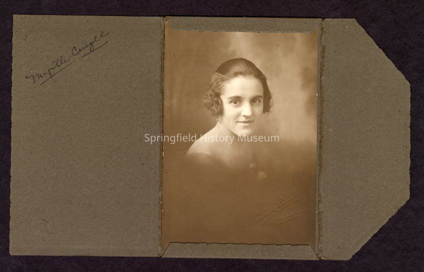 Black and white photograph labeled as "Myrtle [illegible, possibly Cougill]". Based on context of collection, this was probably a student at Springfield High School between 1920 and 1942.Acquisition