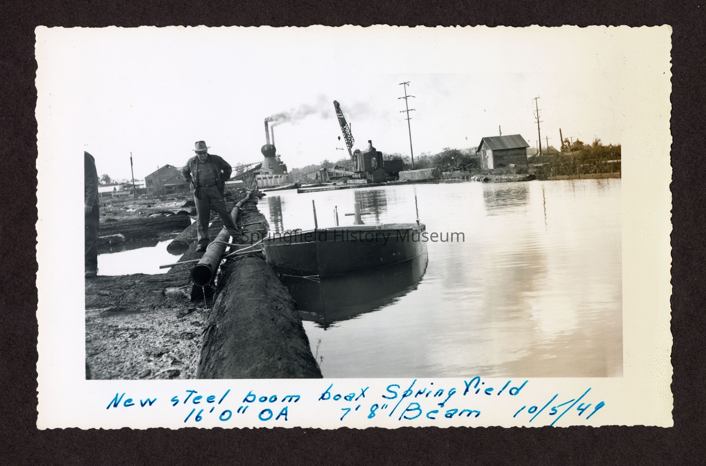 Transcribed inscription on front: "New steel boom boat Springfield, 16' 0" OA, 7' 8" Beam 10/5/49"Photograph Details