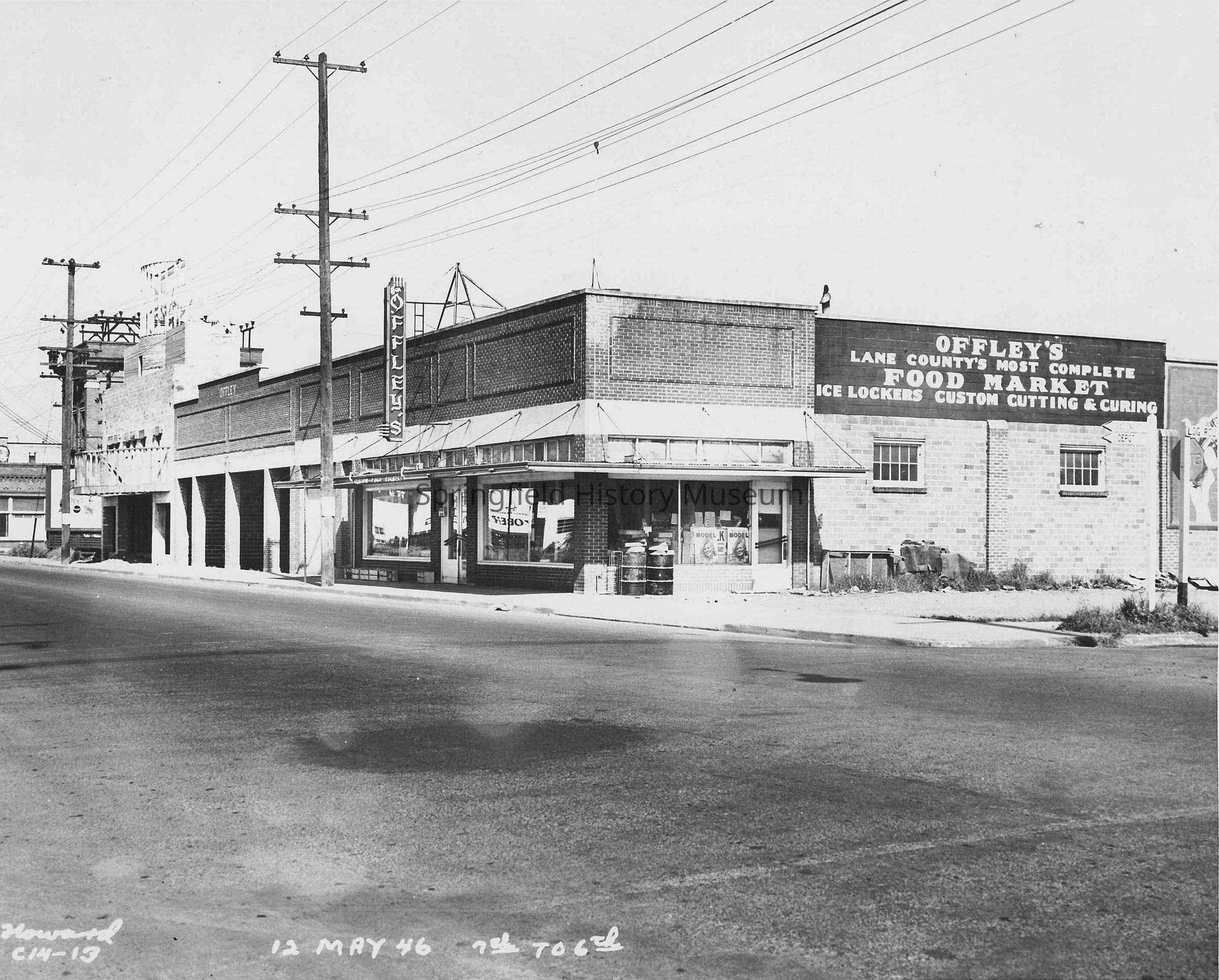 Business & Industry, Street Views, Offley's Food Market, Main Street, 6th Street, 7th Street, Theater, Ice Lockers, Custom Cutting and Curing, Lane County's Most Complete Food Market, Street Views, Business & Industry--Offley's Food Market, Springfield--Streets--Main Street, Springfield--Streets--6th Street, Springfield--Streets--7th Street, Street Views--Springfield