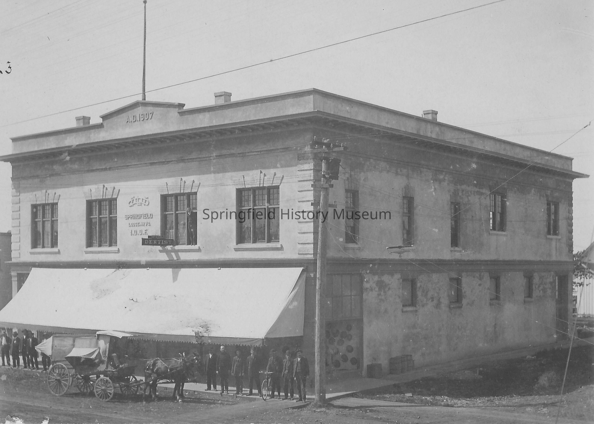 There is a canopy the full length of the building front. I.O.O.F. Building listed in Springfield.Photograph Details