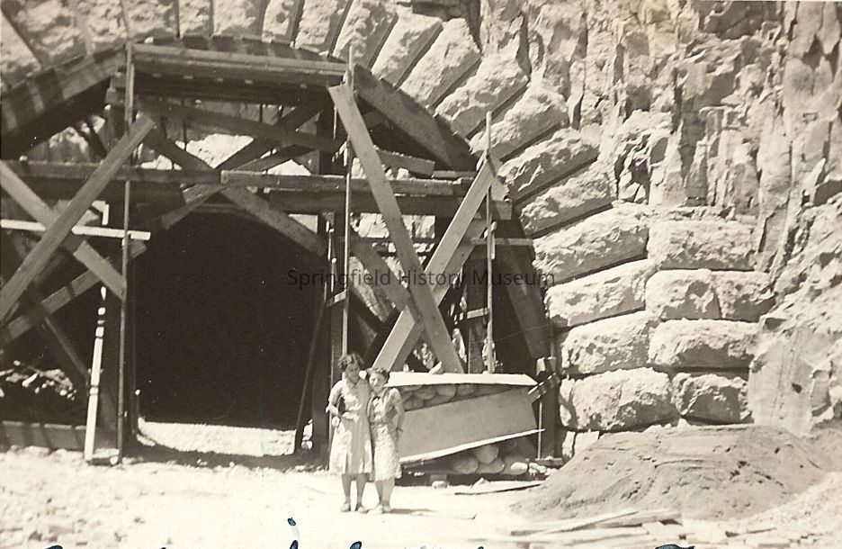Photograph of people posing at the construction of the Highway 58 tunnel, July 2nd 1957Entry/Object ID
