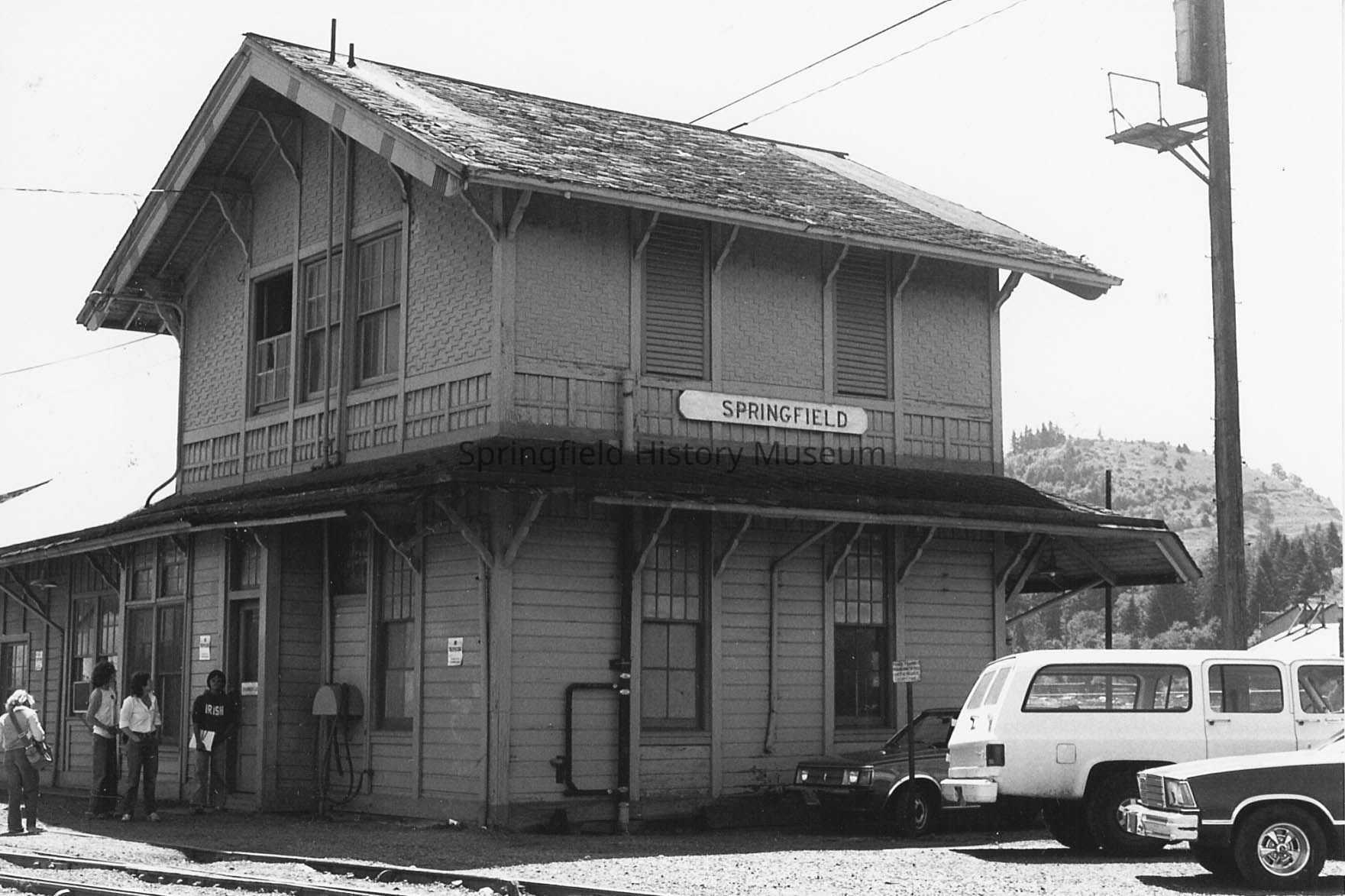 Photograph of People Standing Outside the Springfield Depot, Springfield, OR, date unknownEntry/Object ID