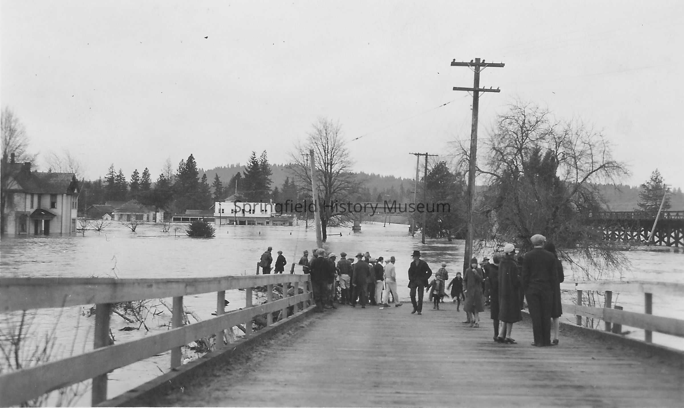 Photograph of people viewing flood from Springfield Bridge, Oregon, 1927Entry/Object ID