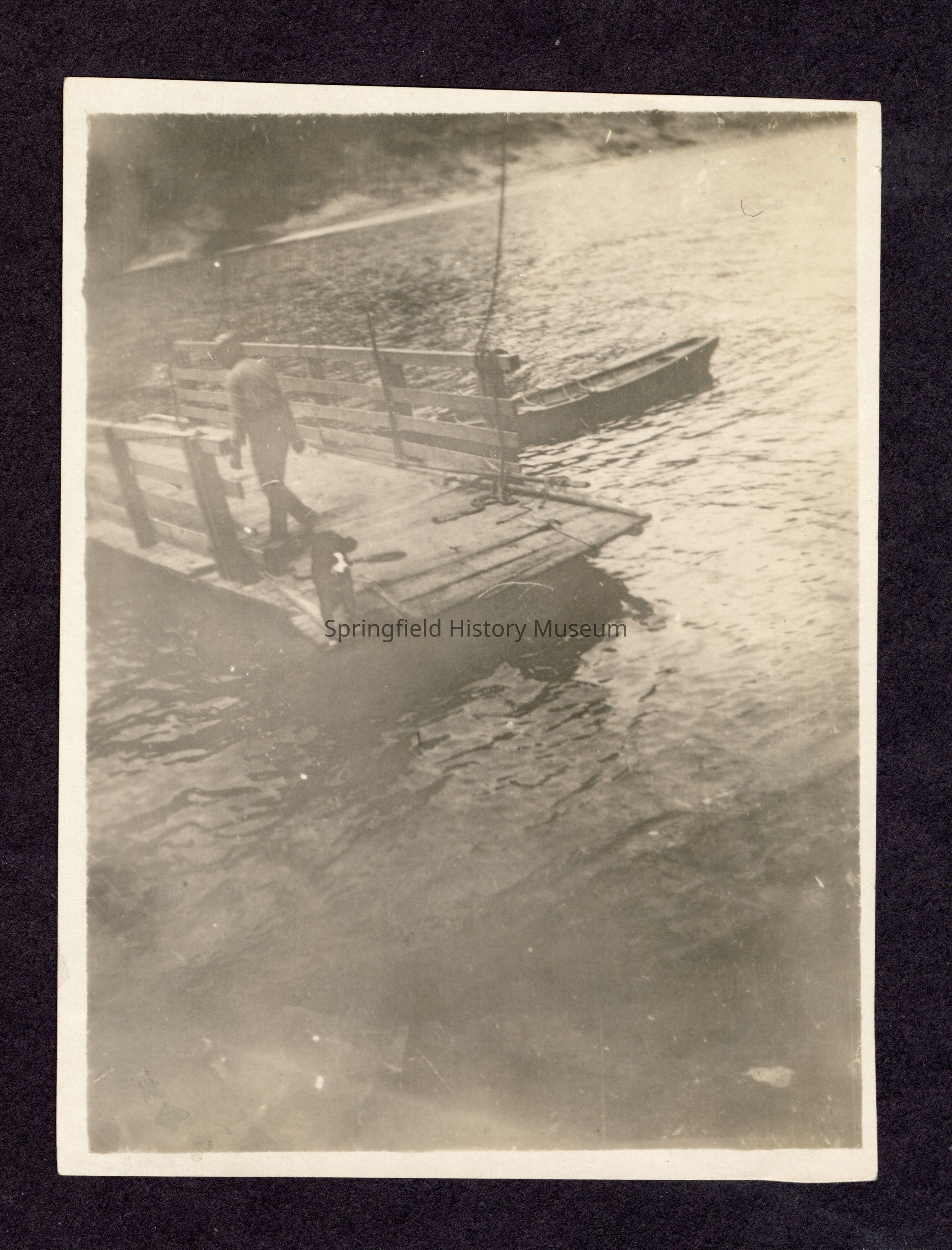 Photograph of person and dog on river ferry, undatedEntry/Object ID