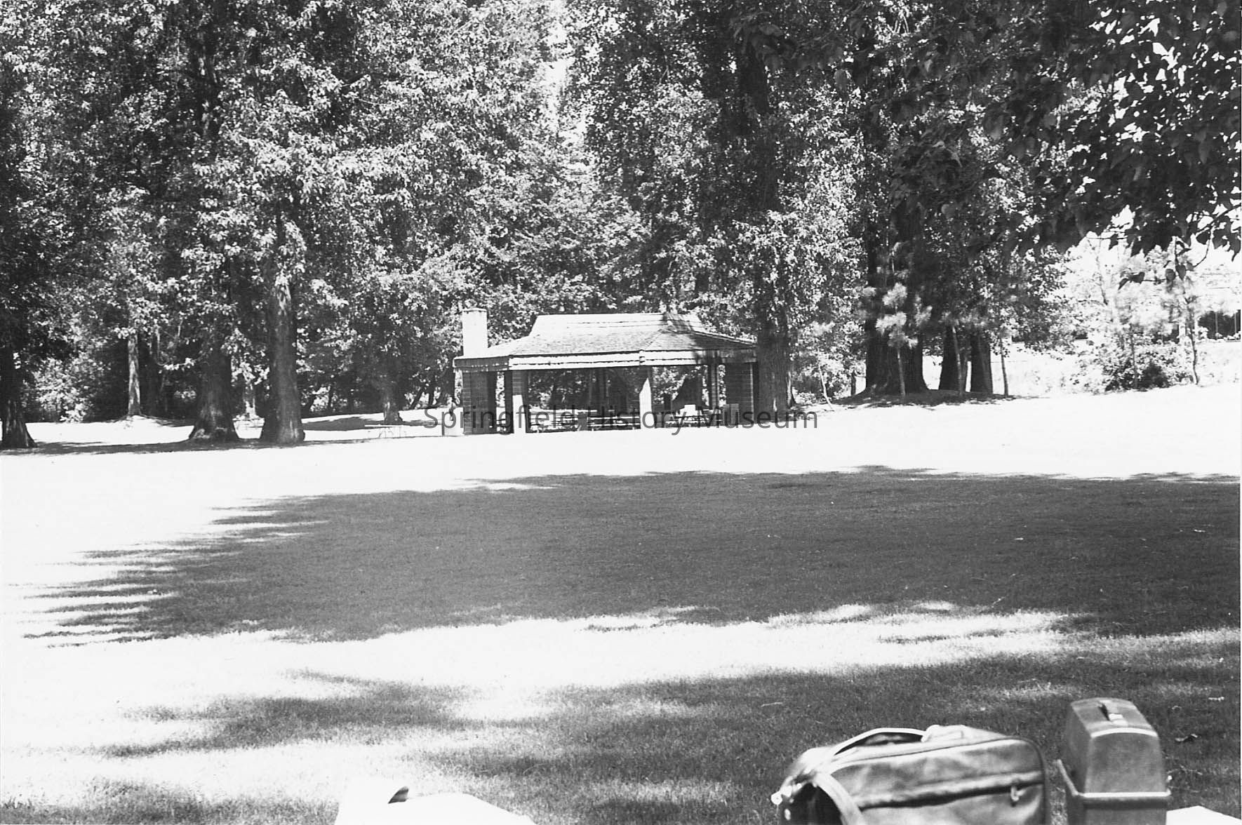 Small covered picnic area at Island Park, undated