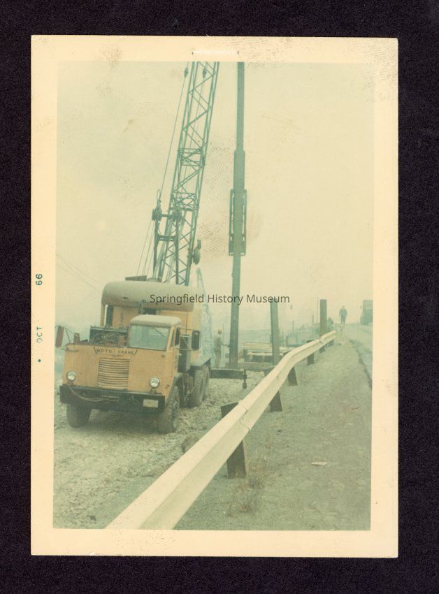 Color photograph of piledriving for bridge project, unknown location near Springfield.Collection
