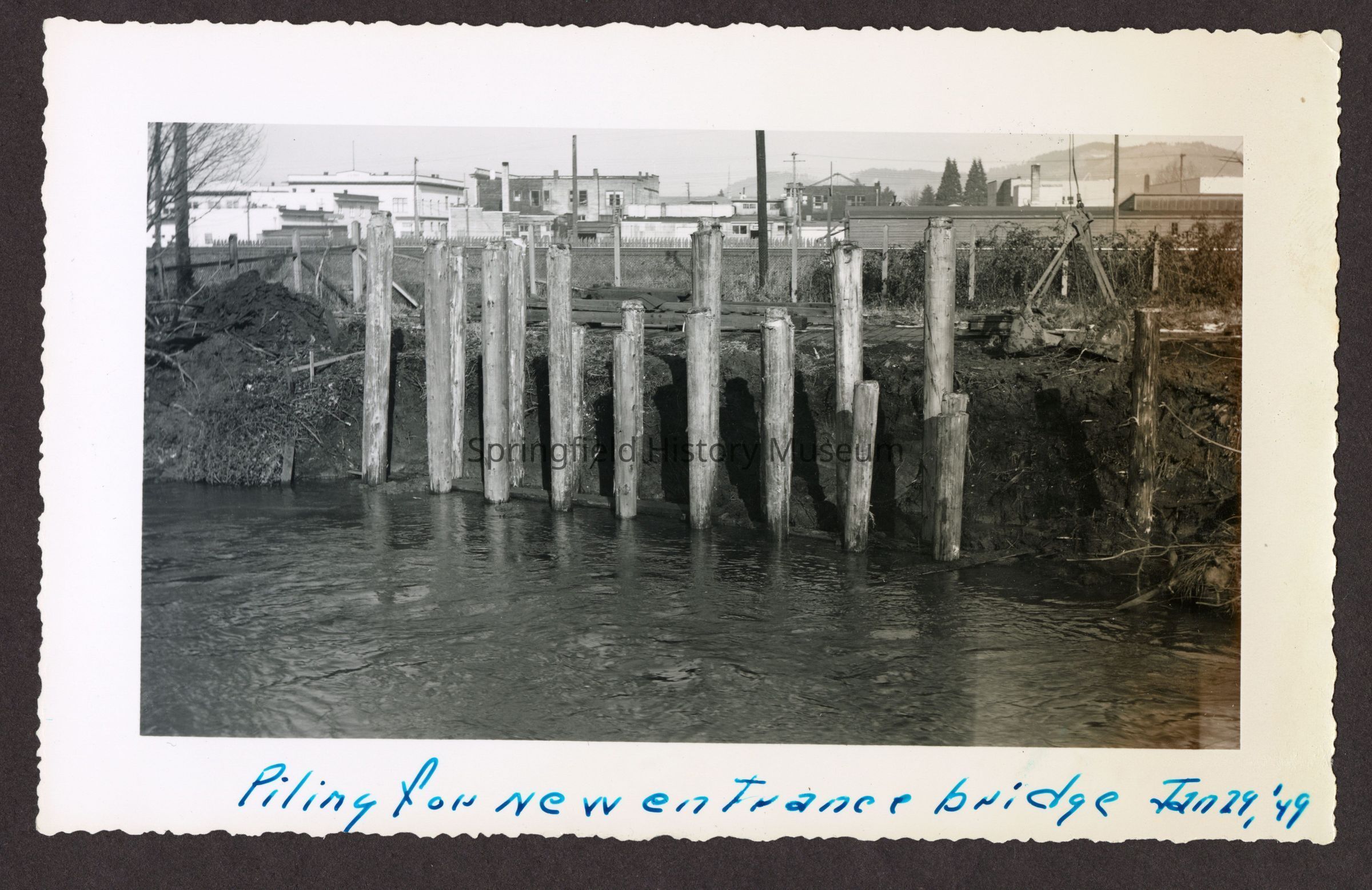 Photograph of piling for new entrance bridge, 1949Entry/Object ID
