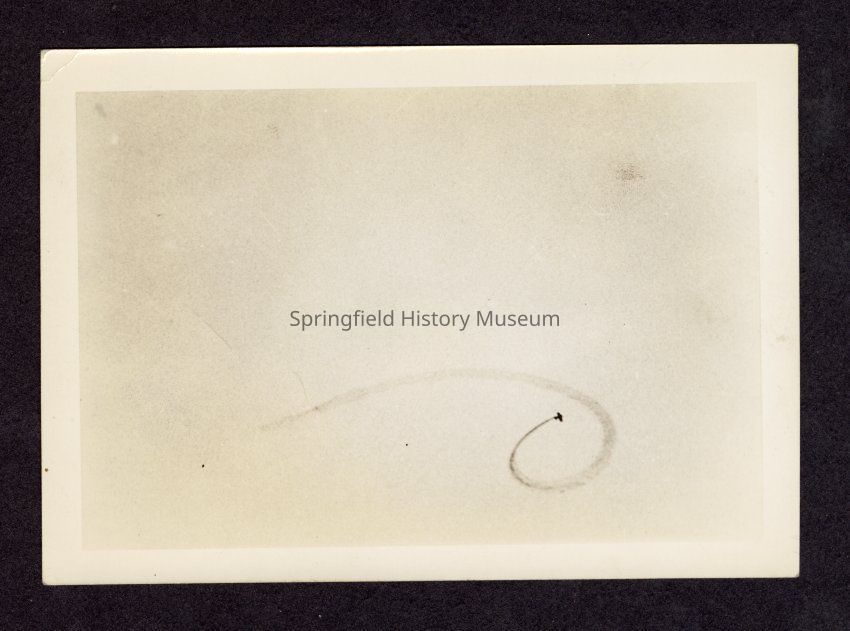 Black and white photograph of air show, circa late 1930s/early 1940s. Plane making spiral.Collection
