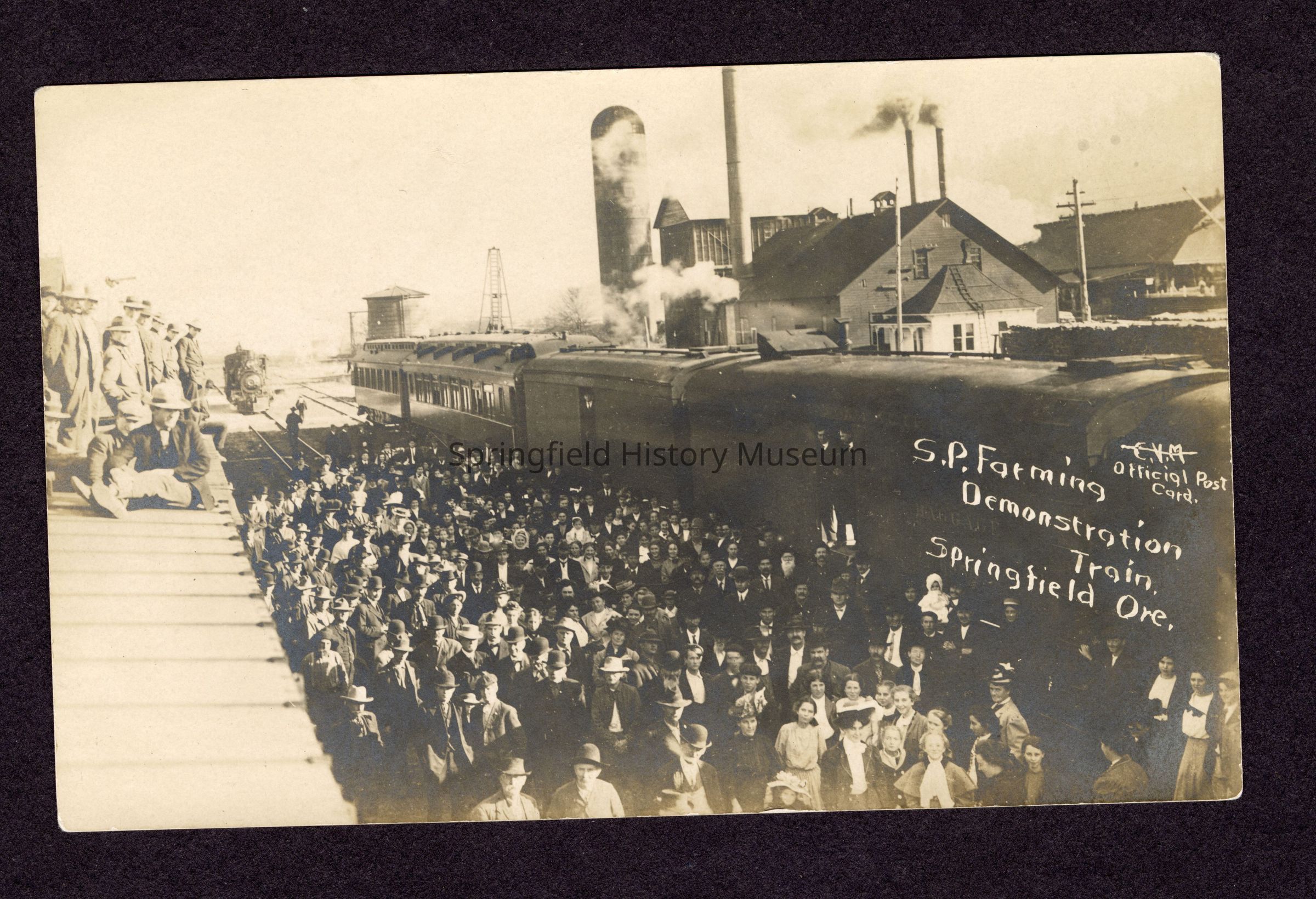 Photograph of Post Card: Official Post Card S.P. Farming Demonstration Train Springfield, Oregon. Date unknown.Entry/Object ID