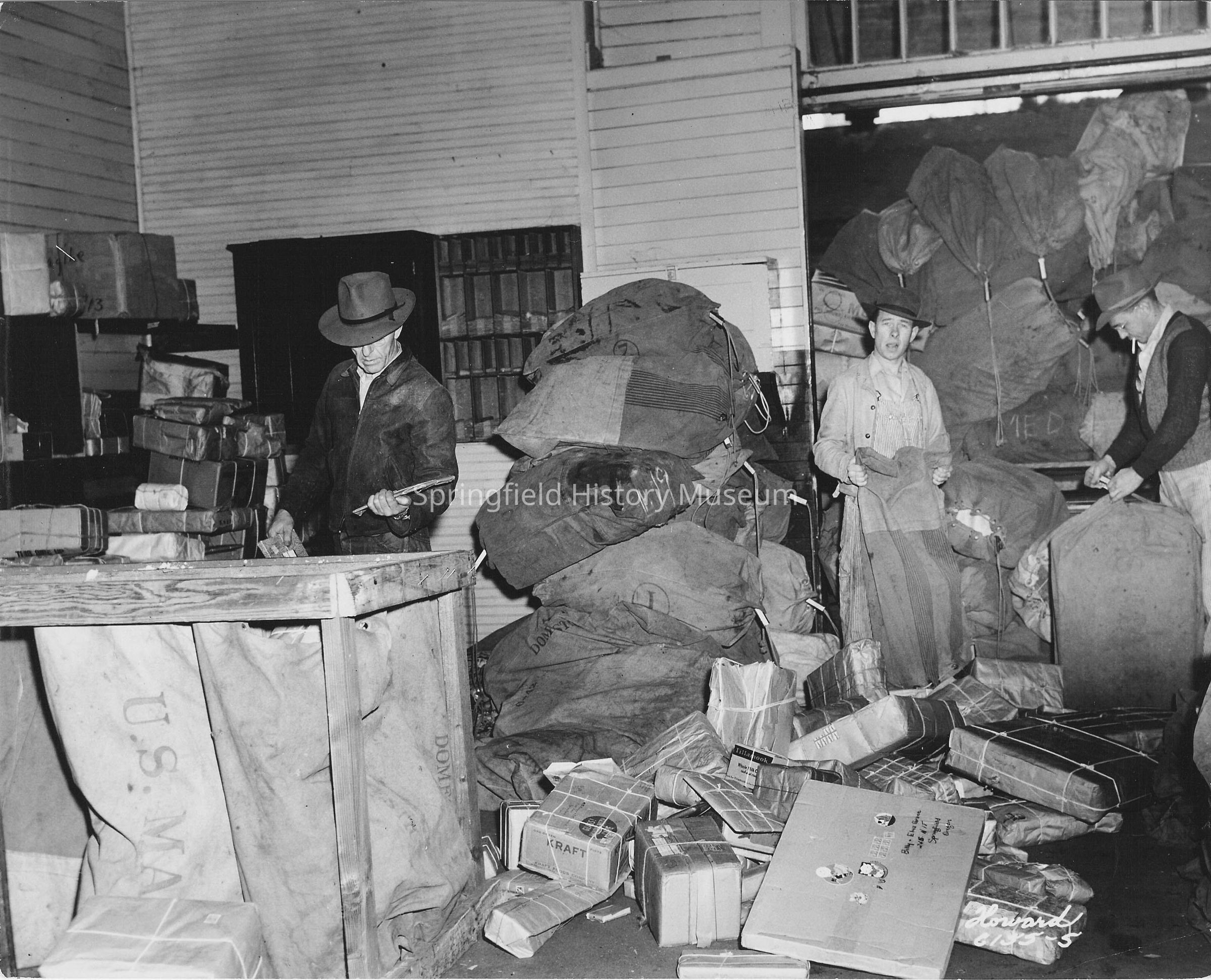 Business & Industry, People, I.O.O.F. Building, Odd Fellows Building, United States Post Office, Christmas, Holidays, Mailing, Presents, Postal Workers, Howard C135-5, Buildings--I.O.O.F. Building, Business & Industry--United States Post Office, Business & Industry--Personnel, Holidays--Christmas, People--Groups & Individuals