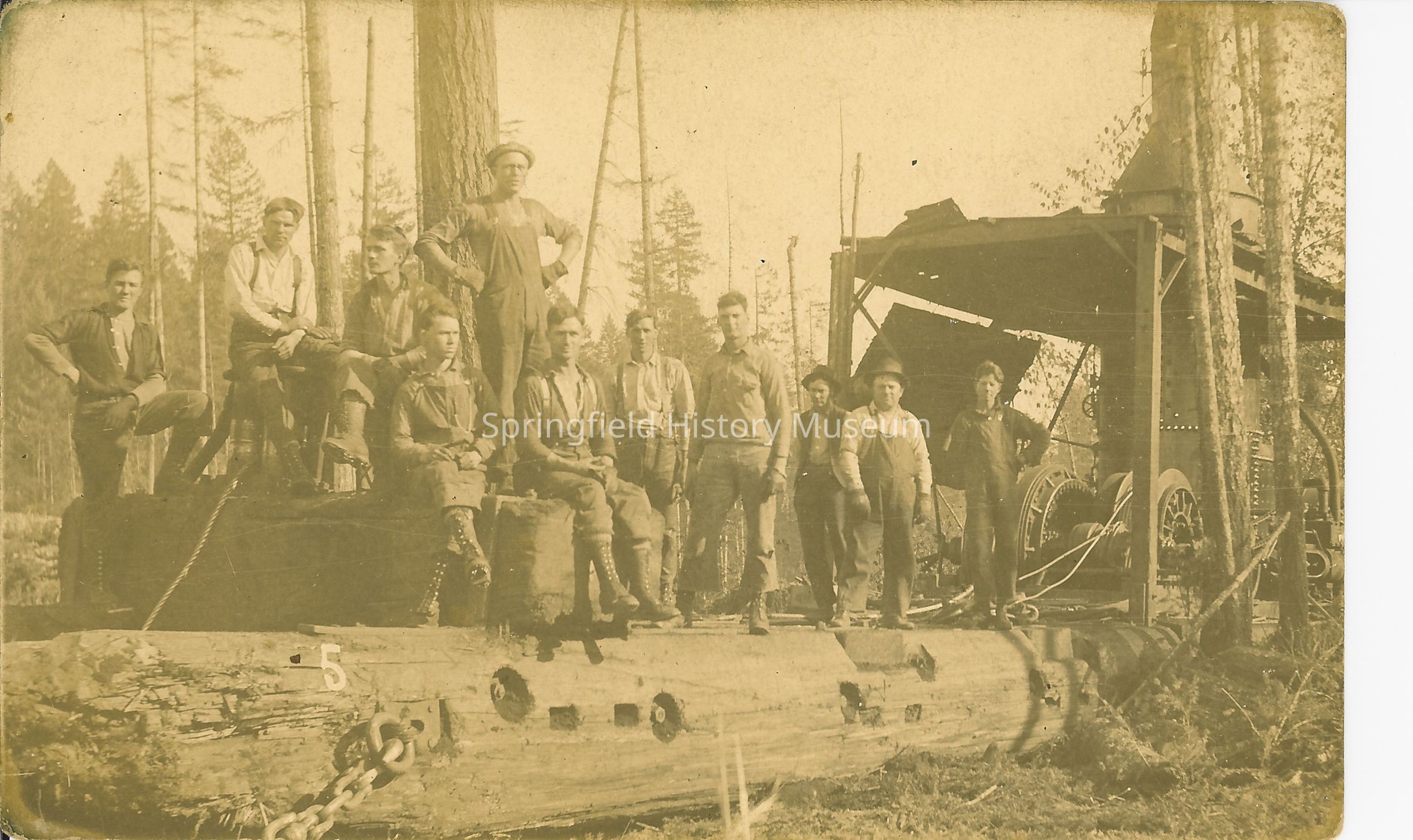 Photograph of Postcard of Loggers with Steam DonkeyEntry/Object ID