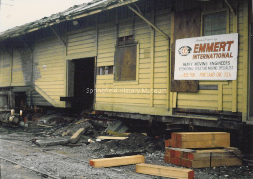 Photograph of Preparing the Springfield Depot to be Moved, Springfield, OR, 1989Entry/Object ID