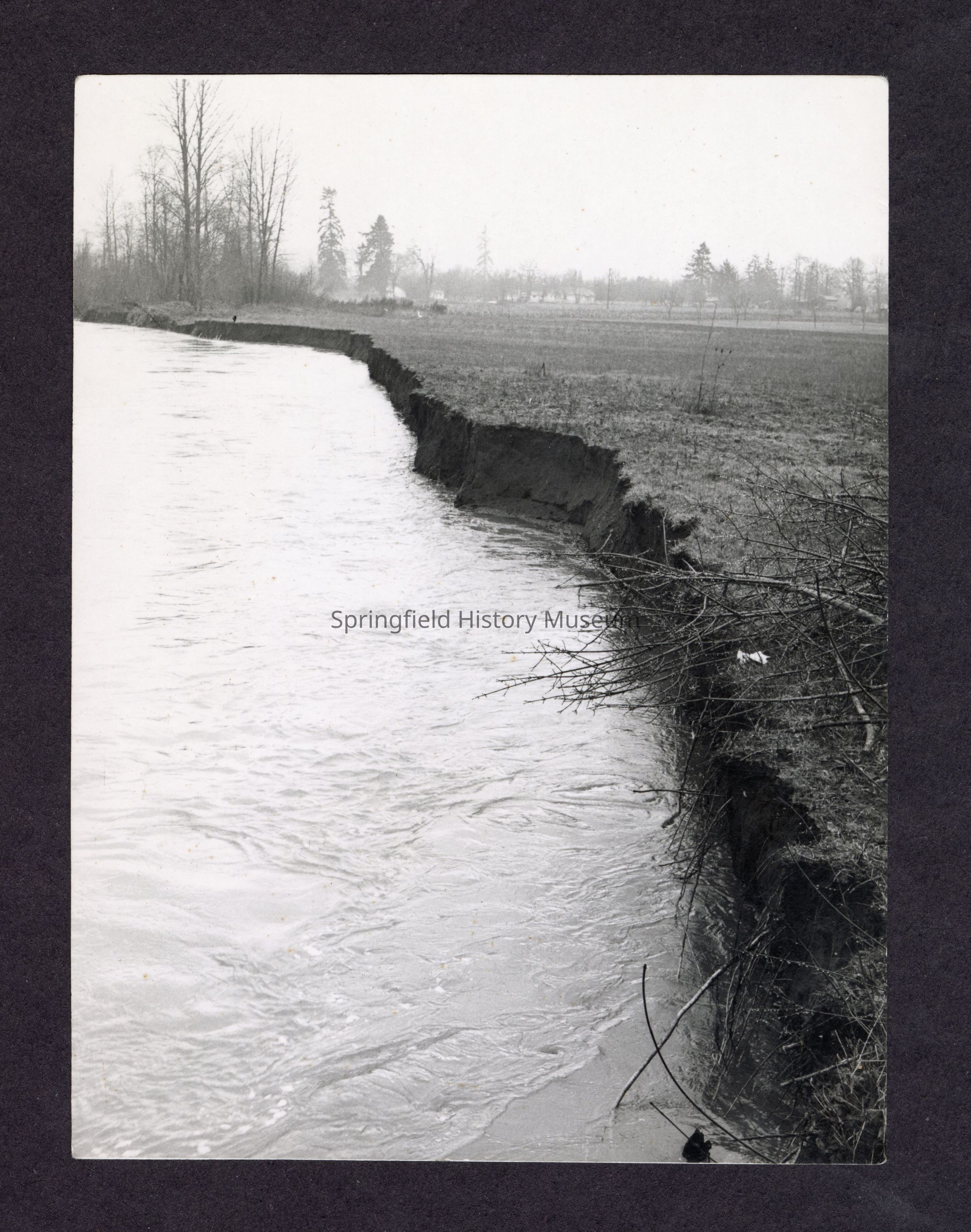 Black and white photograph of a river bank. Undated.