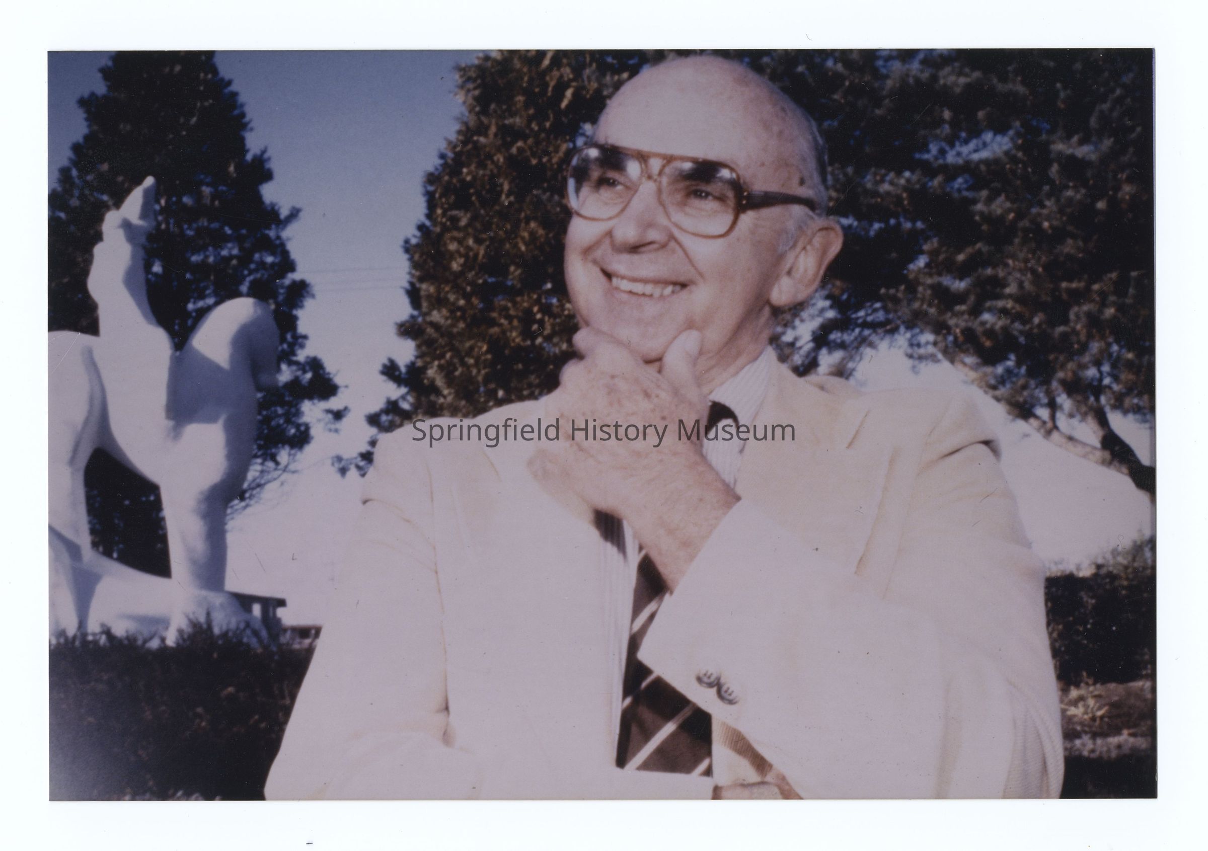 Photograph of Robert (Bob) Smith and The "Equestrian" Statue, Springfield, circa 1960Entry/Object ID