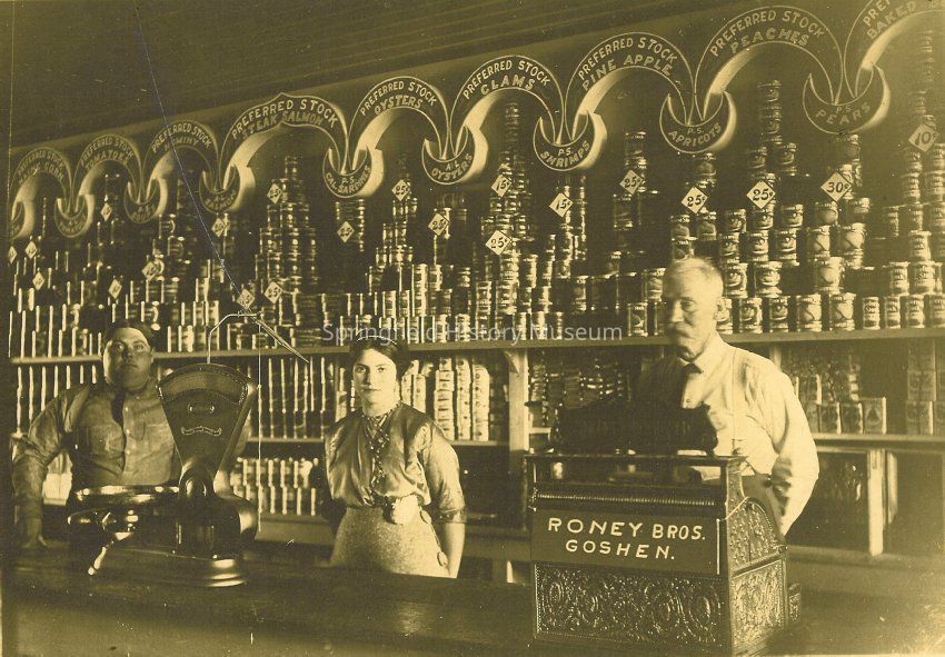 Business & Industry, Goshen, Pleasant Hill Region, Roney Brothers Store, Roney Bros. Store, Store Counter, Canned Goods, Pleasant Hill Region--Goshen, Business & Industry--Roney Brothers Store, Business & Industry--Personnel, People--Groups & Individuals