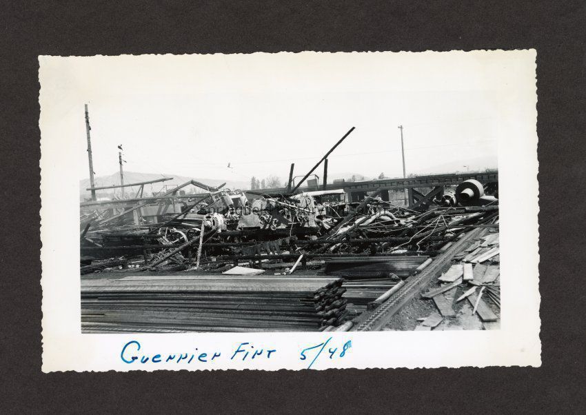 Photograph of scrap machinery after "Guerrier Fire 5/48"