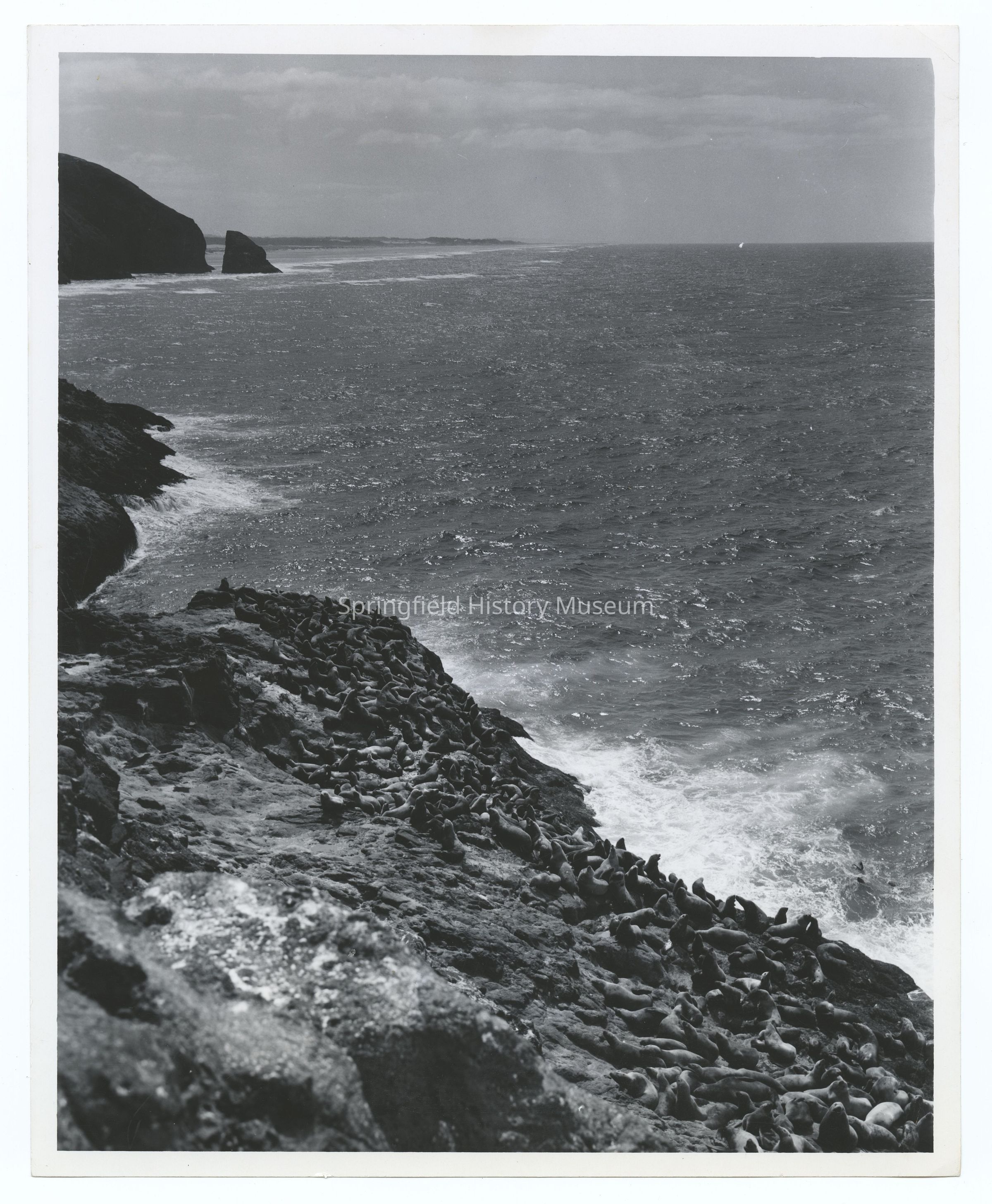 Inscription back: These are some of the residents of the only mainland sea lion rookery in the nation. They stay year round at Sea Lion Caves, and can be seen basking on these rocks or inside their marine cavern, 12 miles north of Florence on U.S. Highway 101 in Oregon. Oregon State Highway Commission Photo # 6430Other Names and Numbers