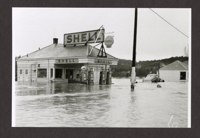 Photograph of shell gas station during Flood,1945Entry/Object ID