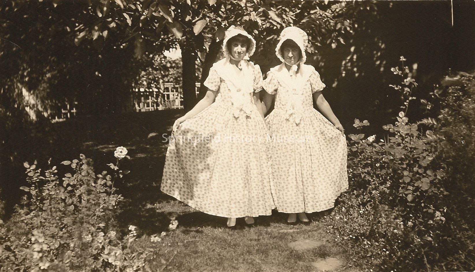 Vitus sisters in matching costumes with bonnets.