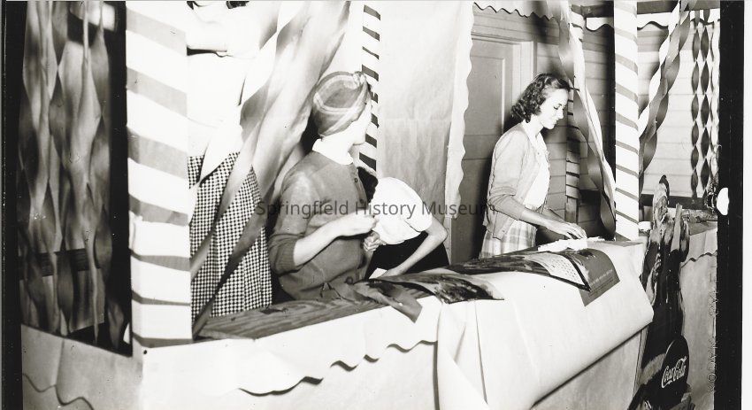 Photograph of some girls setting up booth at Springfield High carnival; 1940sPhotograph Details