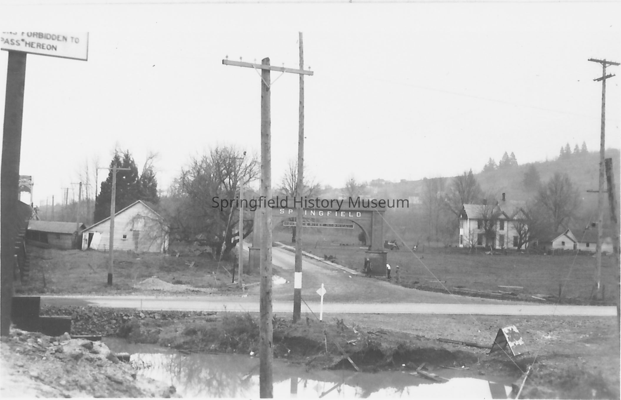 The Springfield arch over the highway in Glenwood to Springfield after the flood waters had receded; 1927.