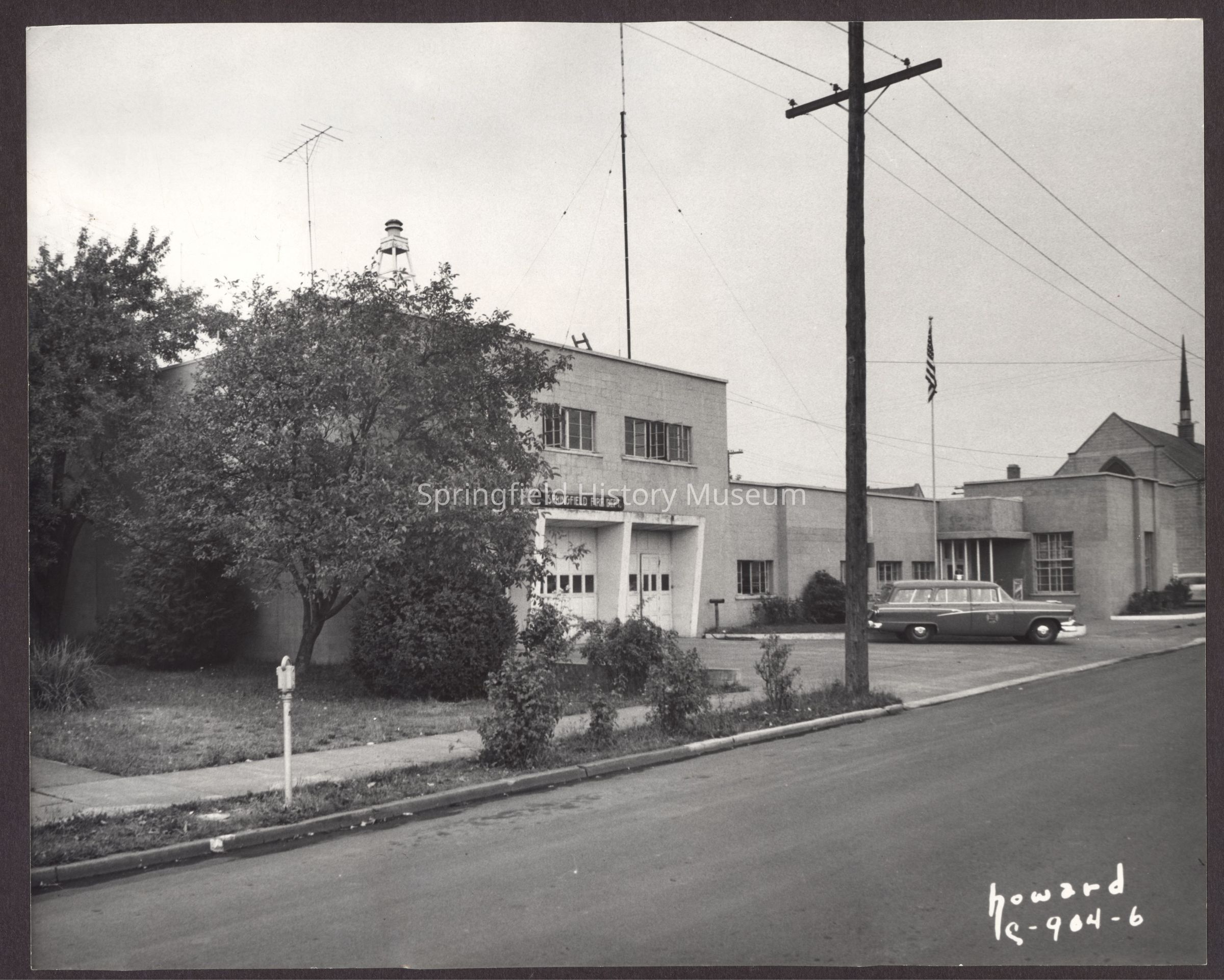 B&W Photo of Springfield City Hall and Fire Station before erection of Library.