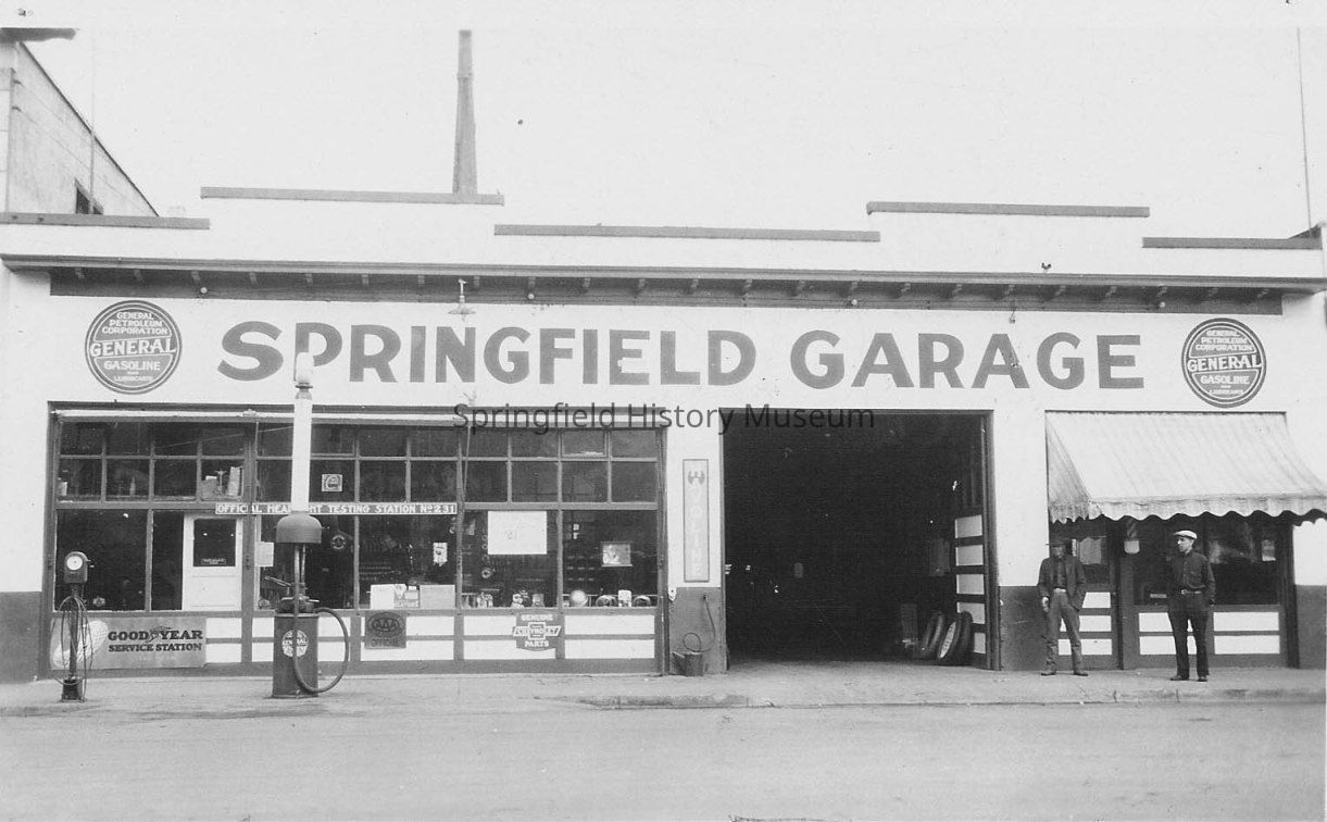 Business & Industry, Springfield Garage, Whitney & Wheaton Barber Shop, Main Street, 4th Street, 5th Street, Adrian Heinie, Good Year Service Station, Business, Business & Industry--Springfield Garage, Business & Industry--Whitney & Wheaton Barber Shop, Business & Industry--Personnel, Springfield--Streets--Main Street, Springfield--Streets--4th Street, Springfield--Streets--5th Street, People--Groups & Individuals