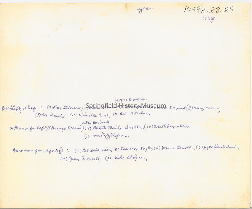 Photograph of Springfield High School Class picture, some identified on back, unknown dateCollection