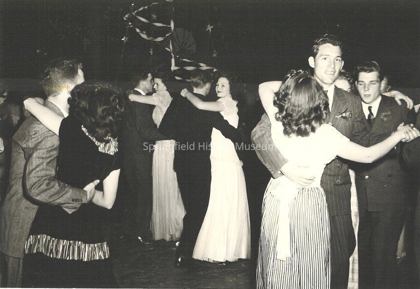 Photograph of several couples at Springfield High formal dance in the gym, undatedPhotograph Details