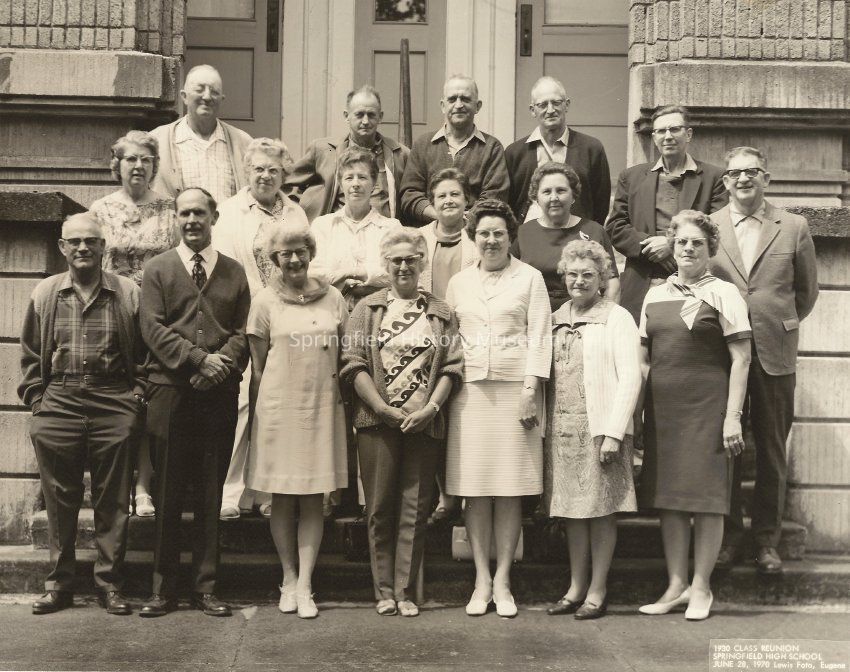 Reunion of Class of 1930, Springfield High School. Taken June 28, 1970 by Lewis Foto. No names on reverse. Names are in an article from newspaper [see 2006.012.038].