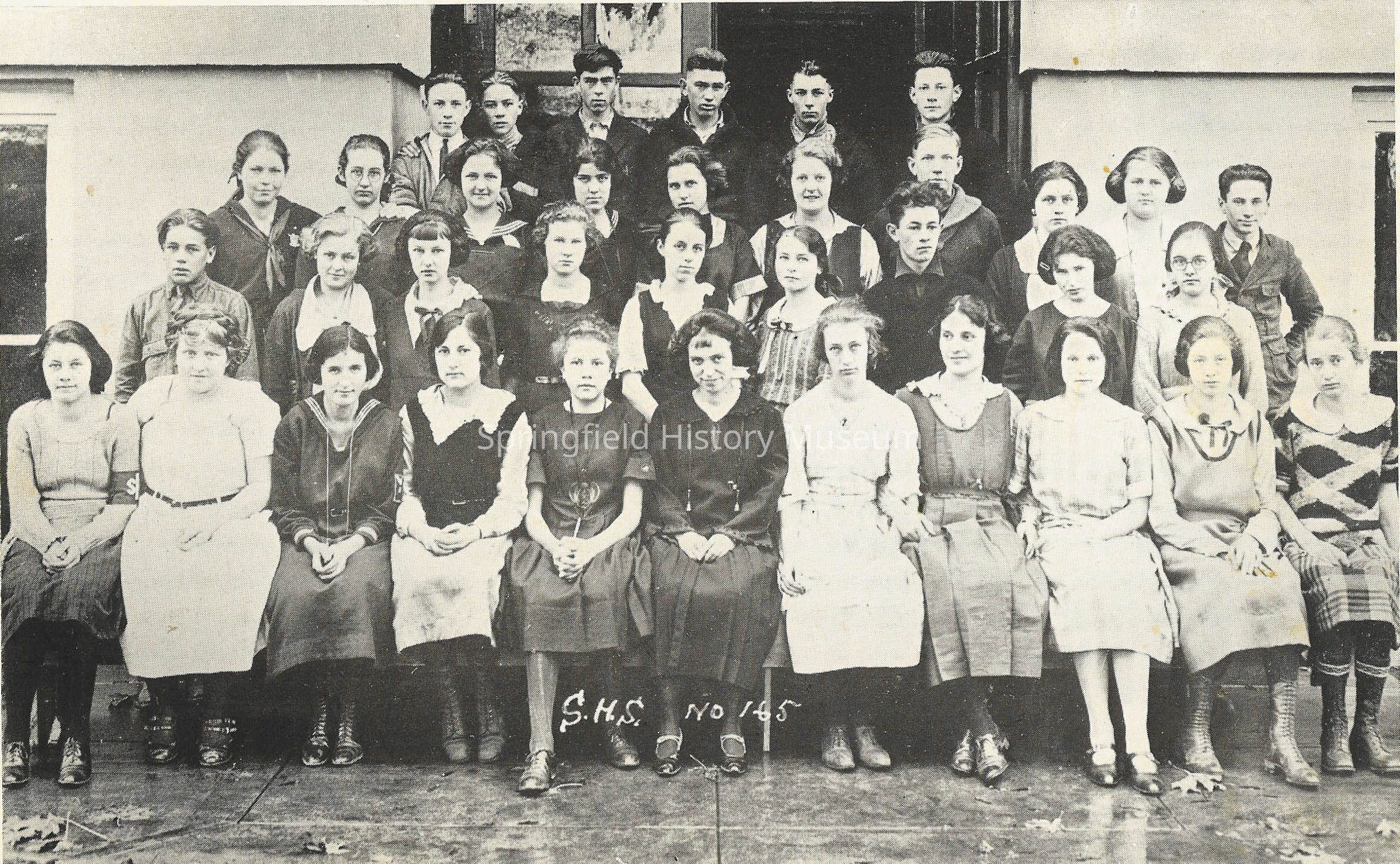 Photograph of class of 1925, Springfield High school. Four rows of students totaling thirty-six. Front row seated.Photograph Details