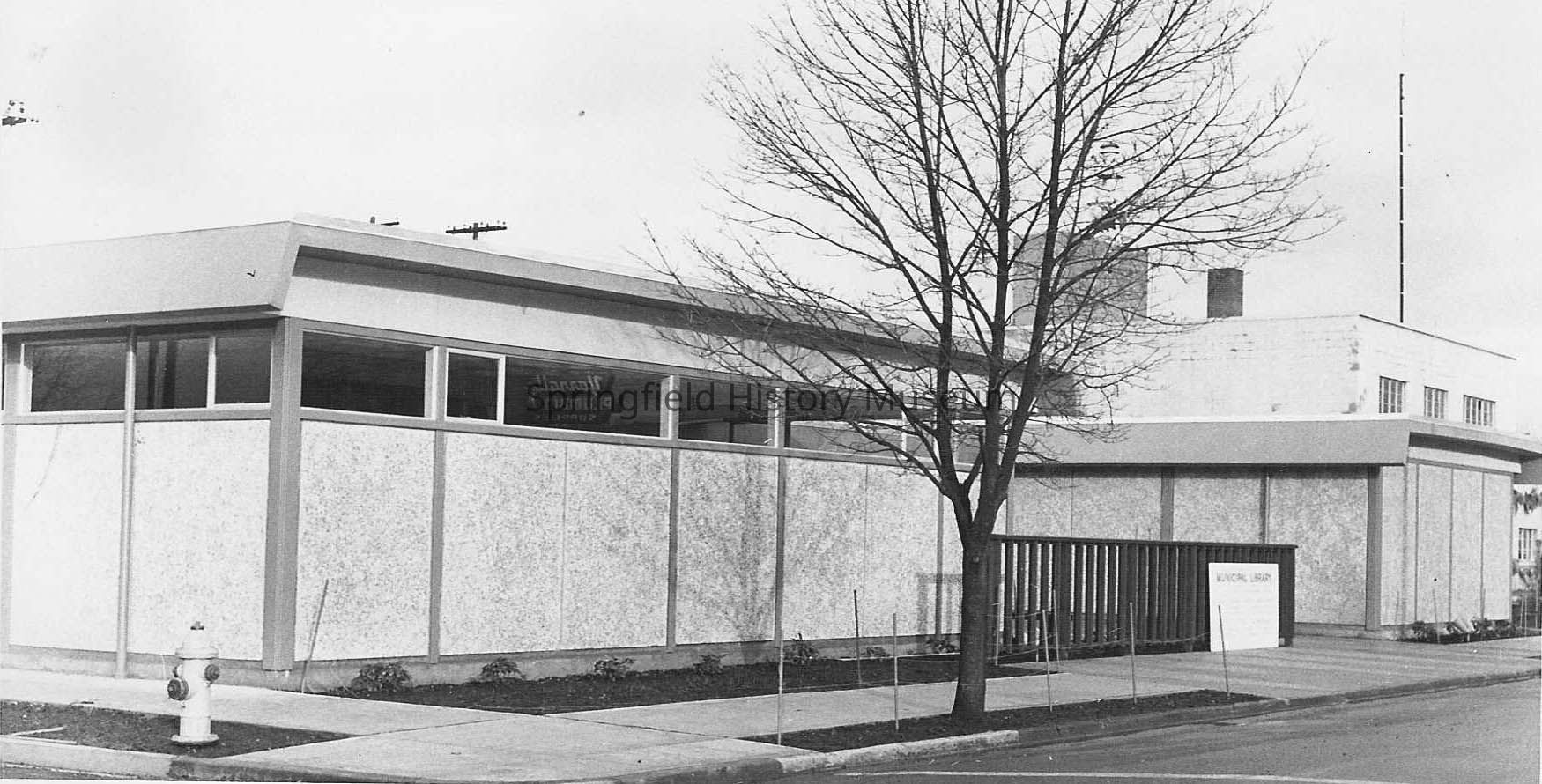 Written on card pasted below photo in an album: "New Springfield Library completed and dedicated January 19, 1958. The first time in 50 years the library has had a home of its own."Photograph Details