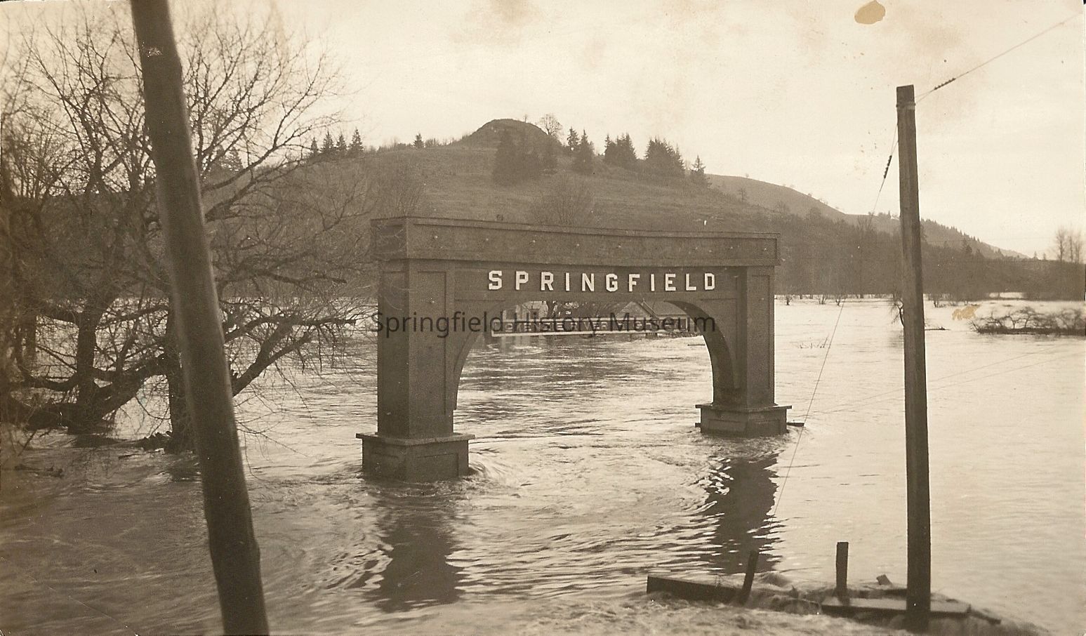 Springfield McKenzie Highway Arch during flooding of Willamette river. Undated.Collection
