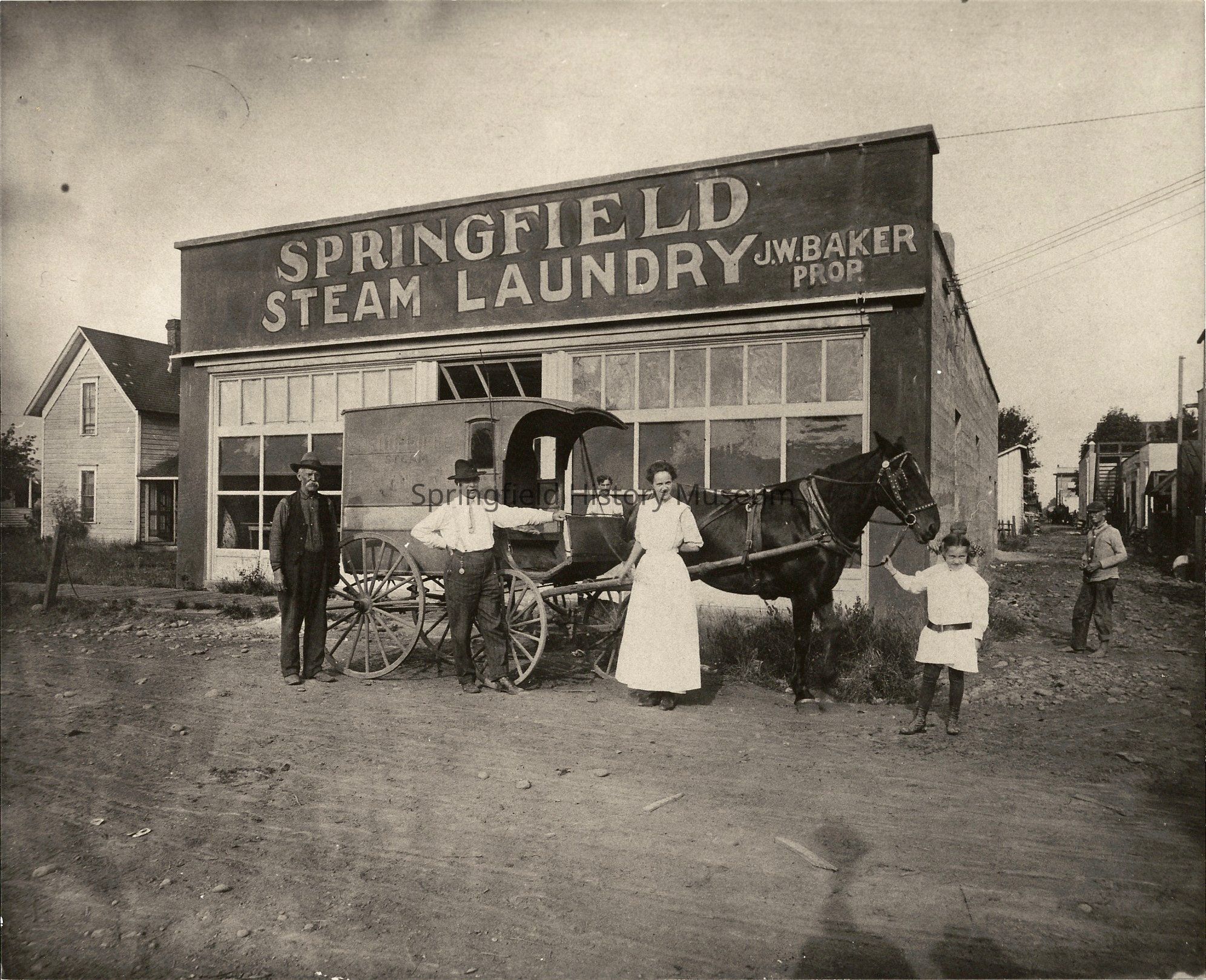 Buildings, Business & Industry, Horses, Laundry, Laundrymat, Springfield Steam Laundry, J.W. Baker, Buildings--Historic Buildings--Springfield Steam Laundry, Business & Industry--Springfield Steam Laundry, Transportation--Animal, People--Groups & Individuals