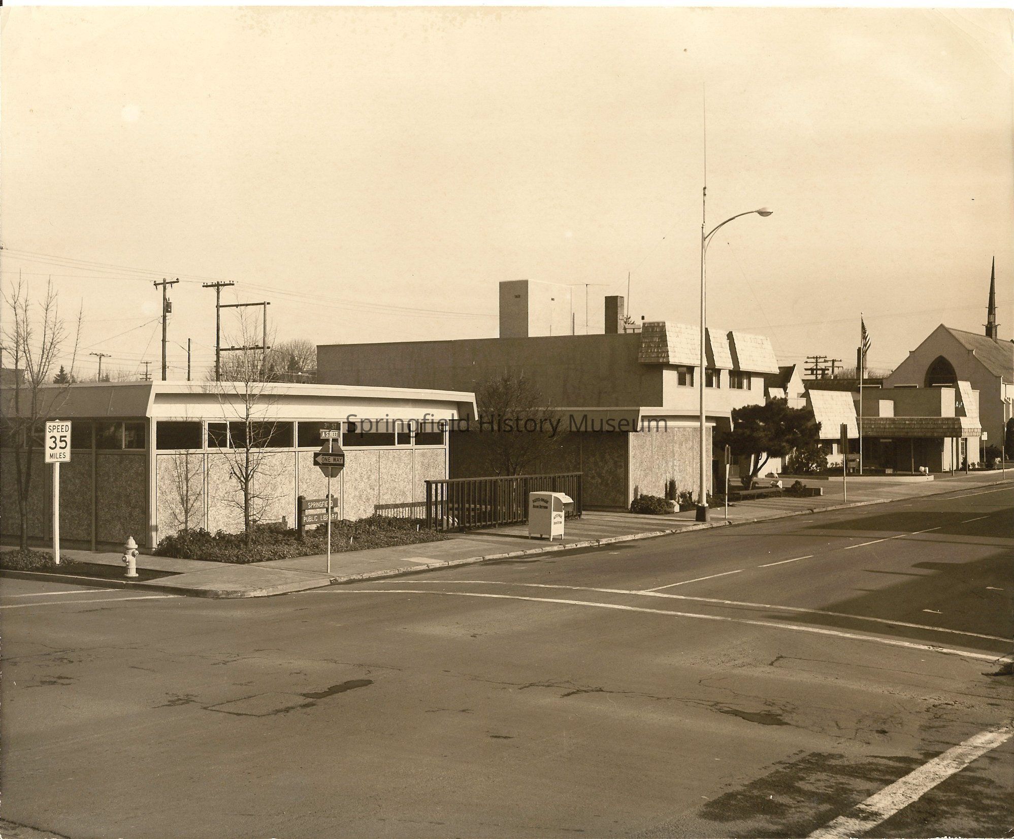 Photograph of Springfield Public Library and Civic Center, circa 1970 on corner of A St. and 3Rd St., undated