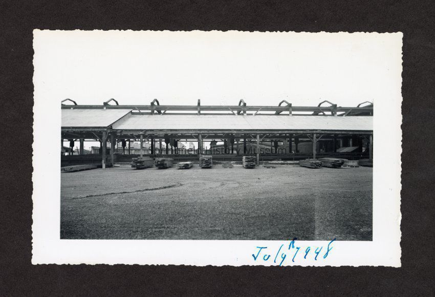 Photograph of stacks of cut lumber on pavement at Booth-Kelly Lumber Mill, Springfield, Oregon, 1948Entry/Object ID