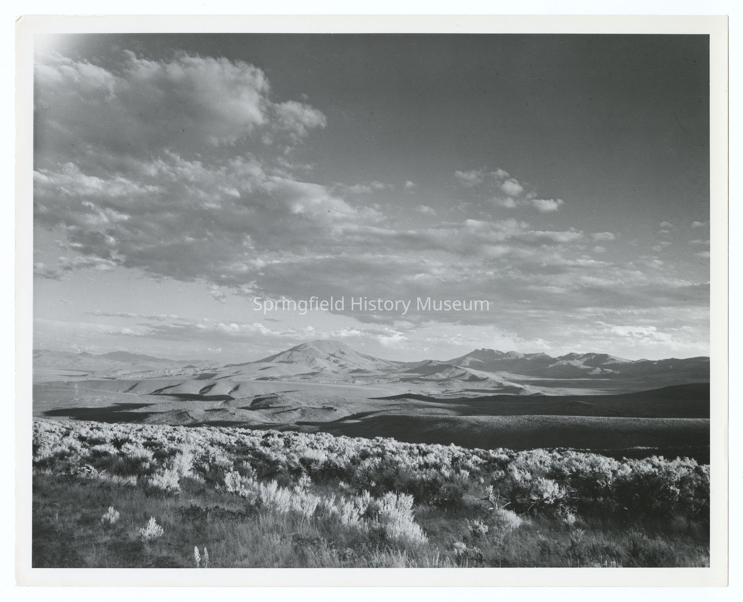 Inscription back: Dorothy Velasco (...); Restricted Photograph, No SV11-6, Subject: Steens Mountains and Desert; This photograph, specially originated or acquired by us for our stock file release service, is our property. Do not reproduce without a specific written release always issued for one-time publication only. Mere possession of this print does not imply right to use or re-use without seperate release in each case. Rates quoted on request. Legal recourse will be taken on violations. Photo-Art Commercial Studios, 420 S.W. Washington St. Portland 4, Oregon, Phone 224-5665Other Names and Numbers