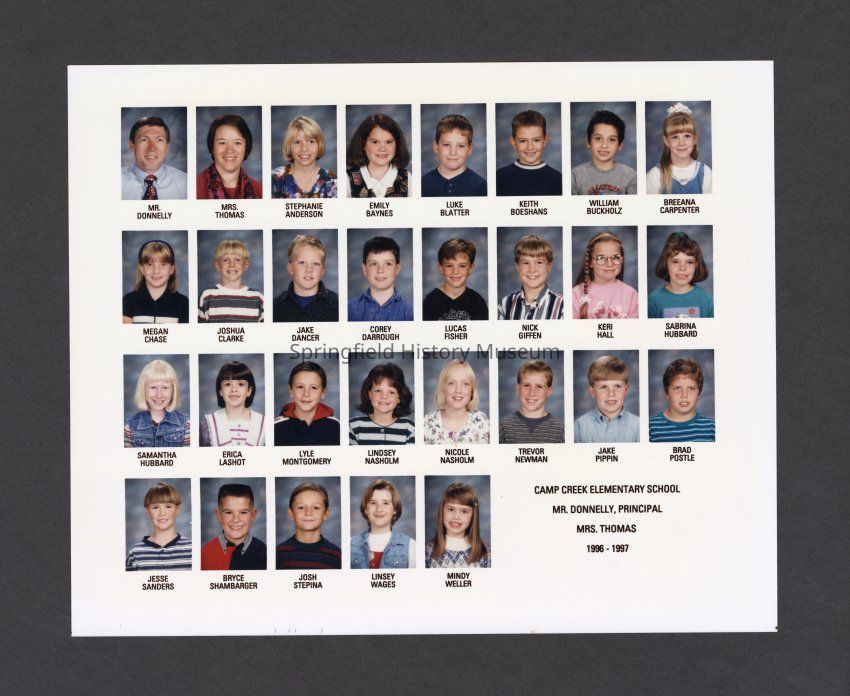 Camp Creek Elementary School class photograph. Principal: Mr. Donnelly. Teacher: Mrs. Thomas.