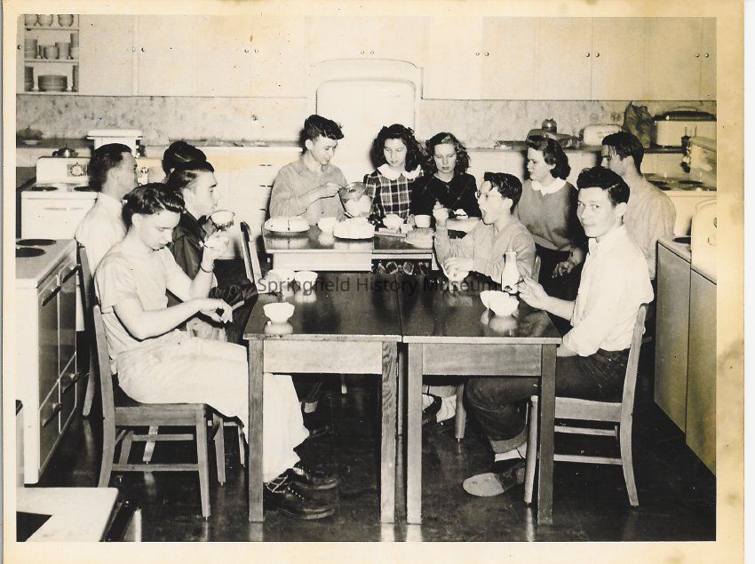 Photograph of students at tables in the Springfield High School HomeEc Room, Springfield, Oregon, circa 1940sEntry/Object ID