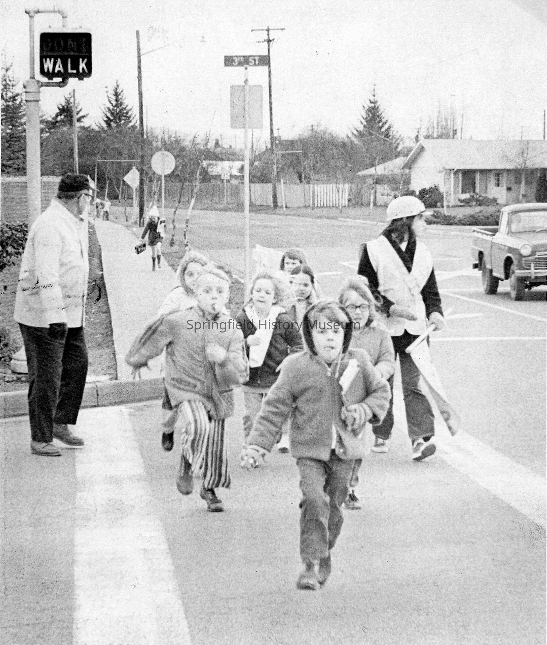 Photograph of students crossing third street, Springfield, Oregon, circa 1970sEntry/Object ID
